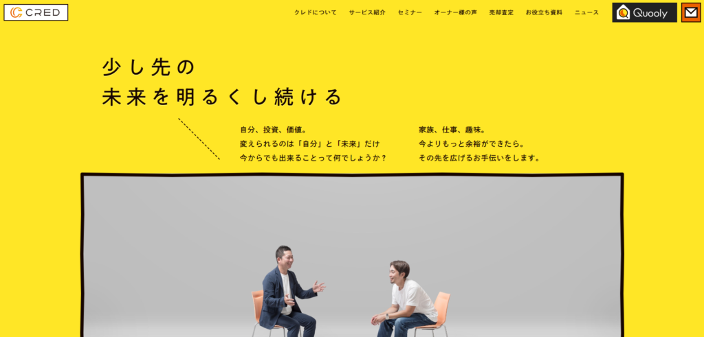 「少し先の未来を明るくし続ける」をモットーとする株式会社クレドは、不動産投資を中心とした資産運用サポートを行っている会社です。顧客一人ひとりの状況に合わせたオーダーメイドの投資プランを提案し、長期的なパートナーシップを重視した事業展開を行っています。